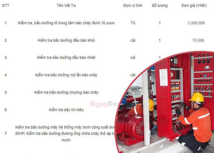 1. Bảng báo giá bảo trì hệ thống PCCC