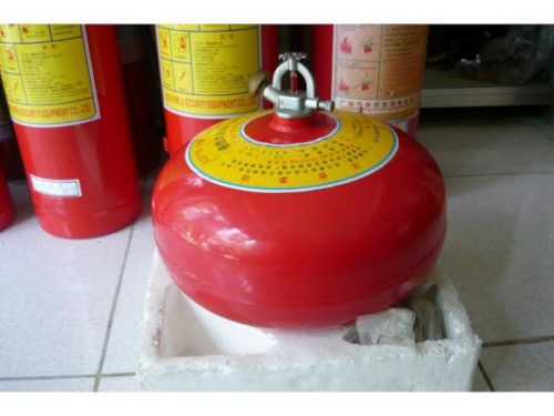 Bình chữa cháy tự động bôt ABC 6kg, sử dụng thân bình hình cầu có mốc treo, đầu bình có gắn nhiệt kế để khi nhiệt độ tăng lên trên 60 độ C bình sẽ tự bung chốt và dập tắt đám cháy trong tíc tắc.