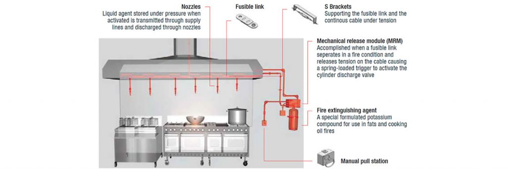 Hệ thống chữa cháy nhà bếp Range Guard bằng hóa chất ướt dùng để chữa cháy rất hiệu quả cho khu vực bếp khách sạn, nhà hàng, trường học, bệnh viện …