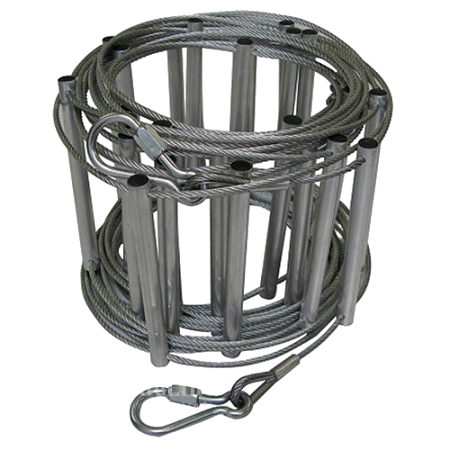 Bình dung dịch bọtCó tính năng dập cháy và phun chữa cháy vật cứng. Thời gian sử dụng 4 năm. Bình này có thể xịt lên người giúp băng qua đám cháy mà không bị phỏng. Giá khoảng 700.000 đồng/bình.Thang dây inoxLà thang được làm bằng sợi inox, móc vào lớp lan can. Với dây thang cuốn, người bán hàng khuyên chỉ phù hợp với nhà dân có độ cao 10m trở xuống, tương đương với ngôi nhà 3 tầng.
