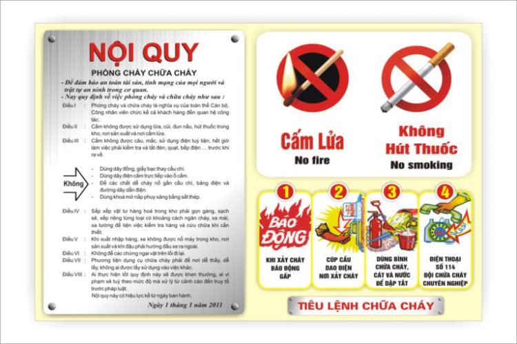 Nội dung của nội quy phòng cháy chữa cháy bao gồm 8 điều ban hành ngày 30/04/2014 như sau:
