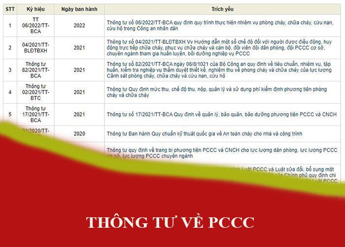 2. Danh sách các thông tư về PCCC